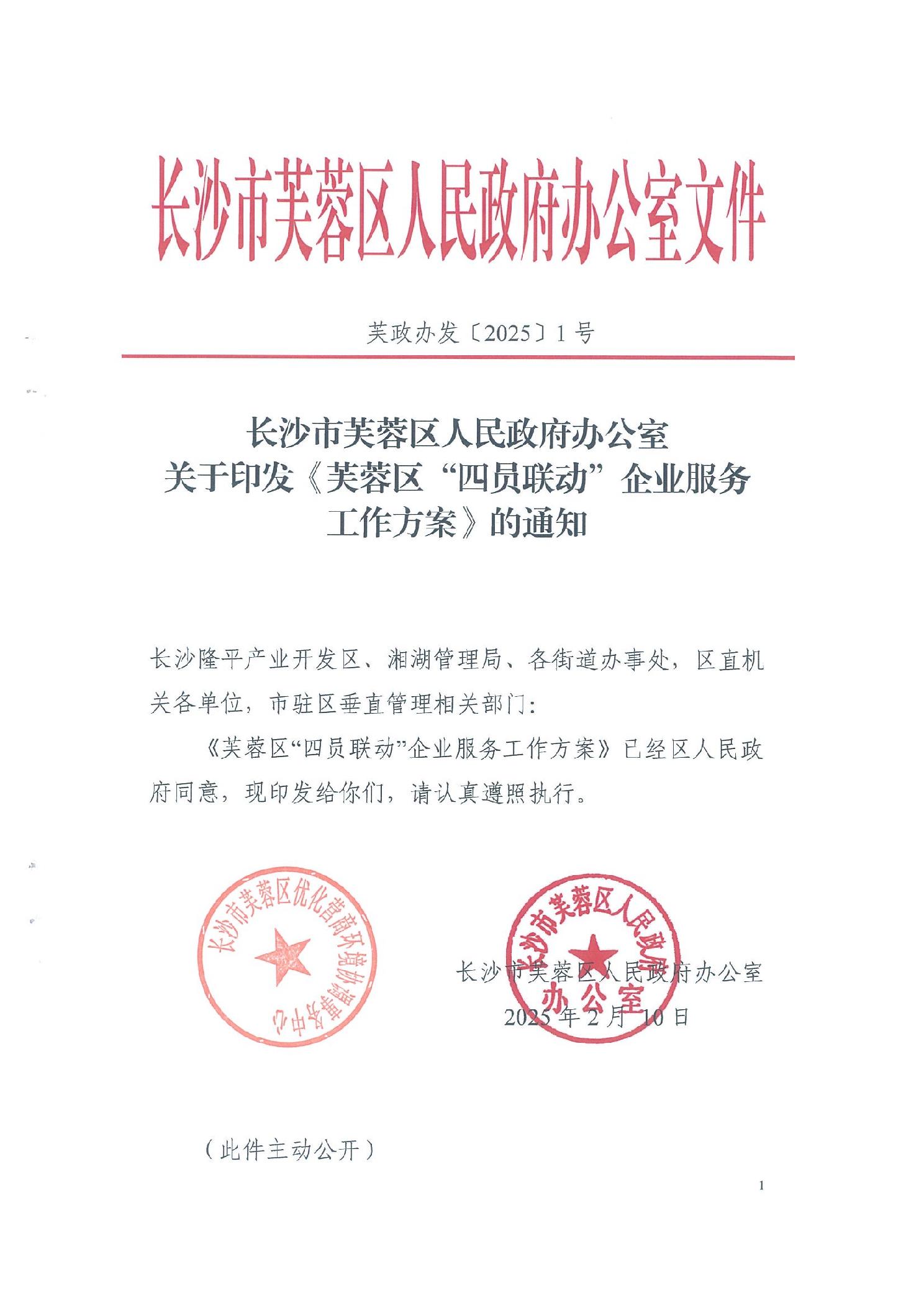 长沙市芙蓉区凯发一触即发办公室关于印发《芙蓉区“四员联动”企业服务工作方案》的通知