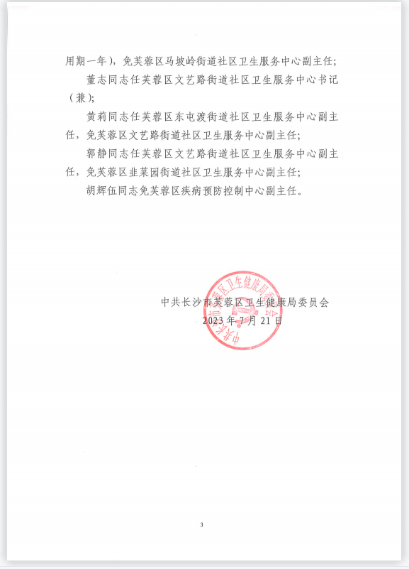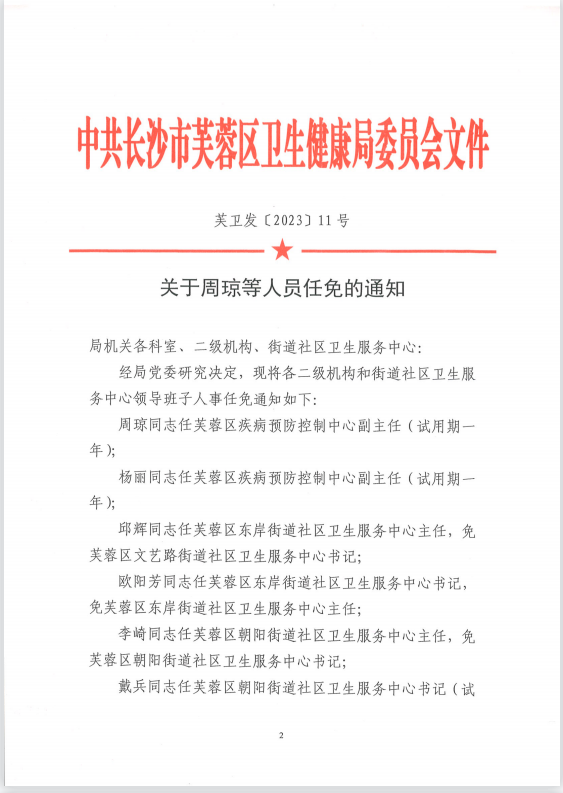 芙蓉区卫生健康局关于周琼等人员任免的通知