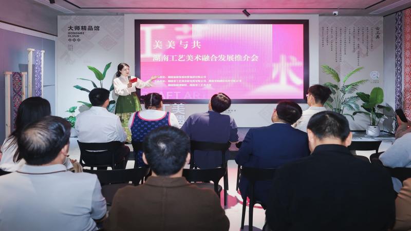 2025年9月23日,以“美美与共”为主题的湖南工艺美术融合发展推介会在湖南湘绣博物馆三楼举行。本次推介会通过工艺美术大师精品馆揭幕、“云上工美-遇见非遗”数字平台上线以及多项跨界合作签约等系列创新举措,彰显芙蓉区以开放融合的姿态,积极推动传统文化与现代生活深度融合,为非遗活态传承和工艺美术产业高质量发展注入新动能。