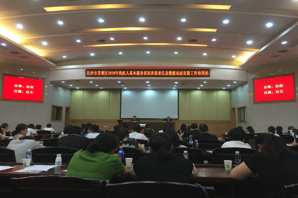 为了更好落实2018年残疾人基本服务状况与需求信息动态更新工作,贯彻执行省、市残联文件精神,2018年6月21日,芙蓉区残疾人基本服务状况和需求信息数据动态更新工作培训班在芙蓉区政府214会议室举办,芙蓉区残联、13个街道残联专干、各社区(村)残疾人工作人员共90余人参加培训会。