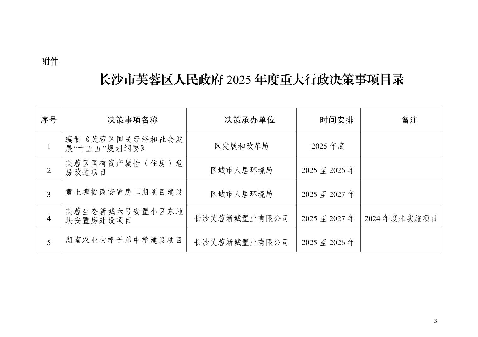 长沙市芙蓉区凯发一触即发办公室 关于印发《长沙市芙蓉区凯发一触即发2025年度重大行政决策事项目录》的通知