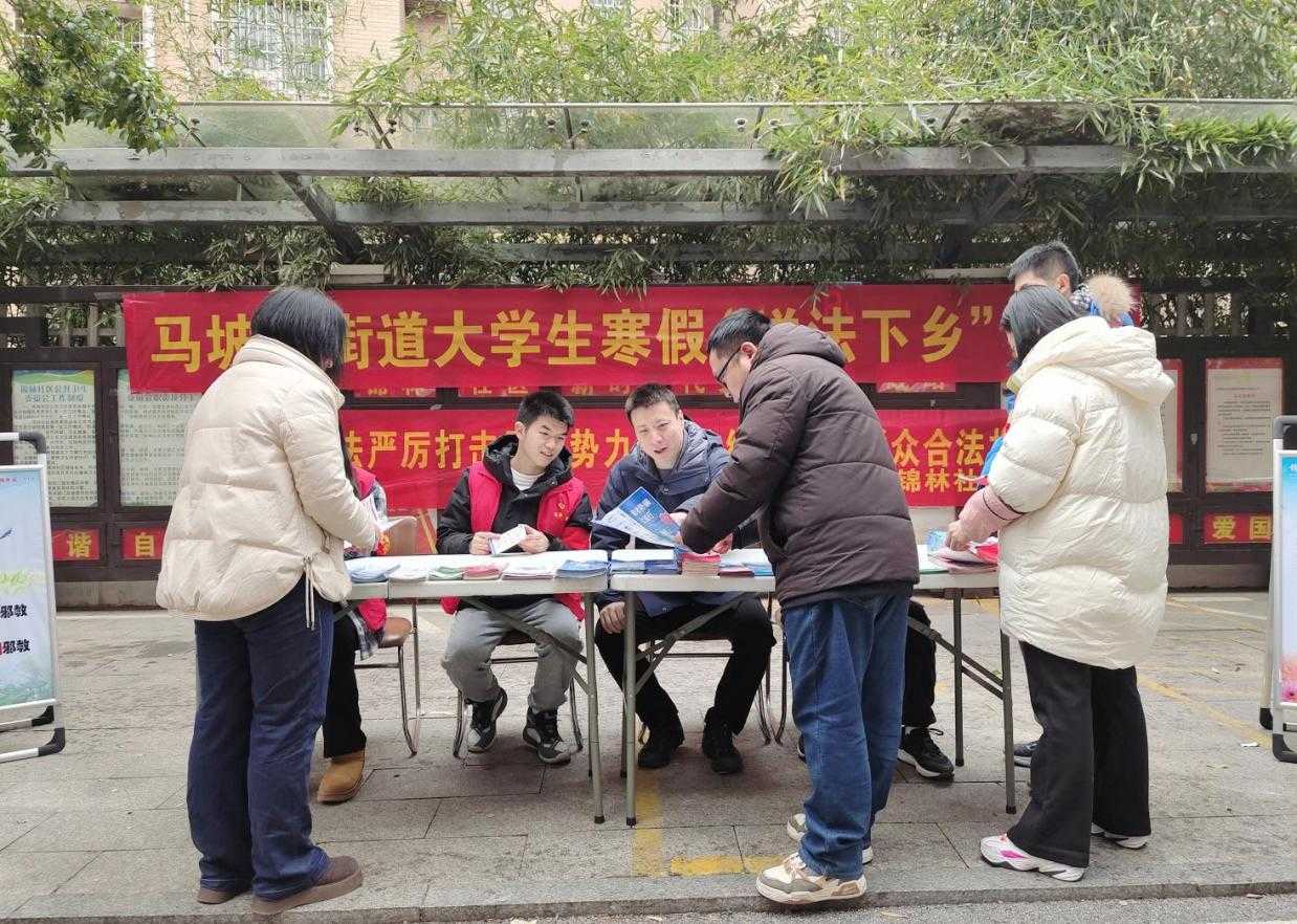 为充分发挥大学生普法志愿者作用,进一步提升群众的法律意识和法治观念,2025年2月14日上午,长沙市芙蓉区司法局马坡岭司法所携手锦林社区新时代文明实践站,共同谱写了一曲“法韵青春路,共筑法治梦”的动人乐章,通过开展“马坡岭街道大学生寒假送法下乡”活动,将法治的阳光洒向了更广阔的田野与人心。