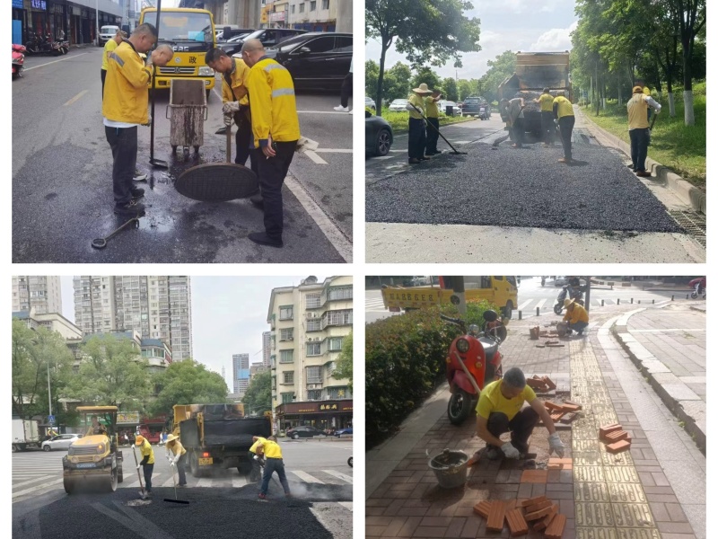 与此同时,全面排查隐患,不断夯实安全根基。坚持“疏堵结合、标本兼治、长效推进”的原则,对主次干道、排水管网等市政设施展开全方位、无死角的“拉网式”排查。2025年5月6日至5月9日,共修整路槽165㎡,摊铺沥青185㎡,人行道修整85㎡,隔离柱3根,侧平石4m,管道疏浚2.6公里,疏通各类井74座,粪污65座,做到隐患早发现、问题快处置。